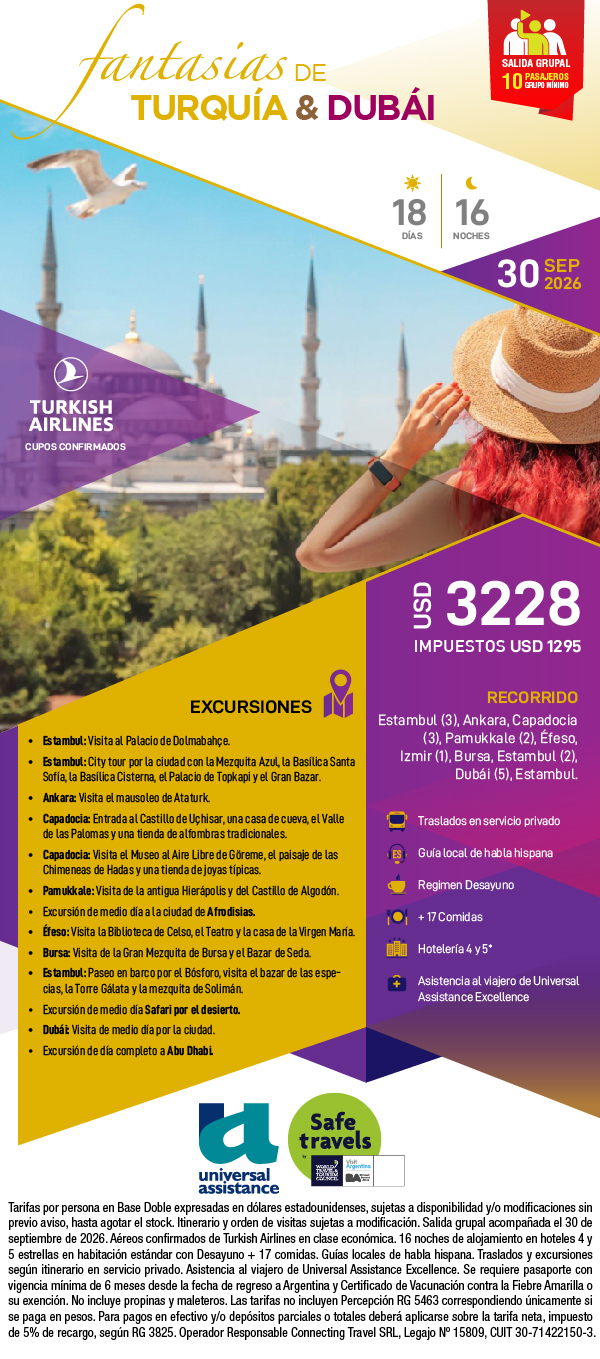 Vuelos confirmados por Turkish Airlines sujetos a modificación y reconfirmación por la compañía aérea.