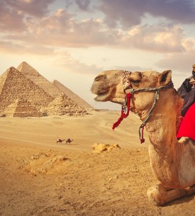 Desayuno en el hotel. Por la mañana realizaremos una visita panorámica de las Tres Pirámides de Guiza: Keops, Kefren y Mecerinos, el conjunto arquitectónico considerado como el más importante de las Siete Maravillas del Mundo Antiguo. Admiraremos la Gran Esfinge con cabeza humana atribuida al rey Kefren y cuerpo de león y visitaremos el Templo de Kefren. Almuerzo en un restaurante típico.